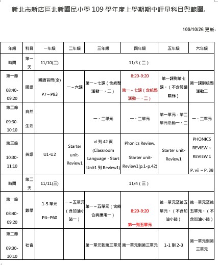 時間如附件,請家長假日指導孩子充分複習。